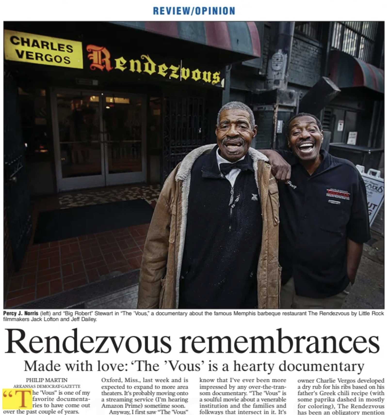 Directed by Jack Lofton and Jeff Dailey, “The ‘Vous,” a feature documentary, follows the legendary waiters of the Rendezvous as they retire after 50 years of service at the famed restaurant in Memphis, Tennessee. (New York Times write up here.)